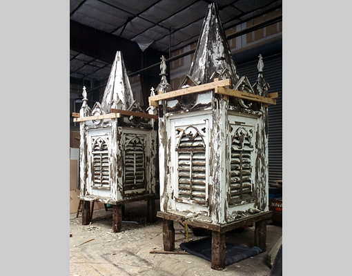 In response to this problem and to facilitate future maintenance Anthony Anella Architect re-designed the connection between the wood spires and the bell chamber so that the spires could be removed easily from the church by crane (the cost to hire a crane for a day is significantly less than the cost to erect the necessary scaffolding).