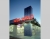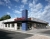 Wrapping around the tower and protecting the windows is a steel canopy. A steel rod and turnbuckle assembly secured to the building with bolts and an exposed steel plate supports the canopy and articulates the unpainted concrete masonry walls. Bright neon signs are mounted to a special track located at the perimeter of the canopy --- not on the walls of the building, a strategy which anticipates and precludes the unsightly bolt holes left behind by signs belonging to future tenants