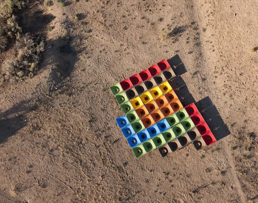Each "patch" of the Land Quilt concentrates natural precipitation with a fabric funnel stretched over a wire frame staked into the ground. Below the funnel and hollowed in the soil is a seed ball consisting of native seeds, clay and compost. By concentrating natural rainfall the Land Quilt intends to germinate patches of native plants.